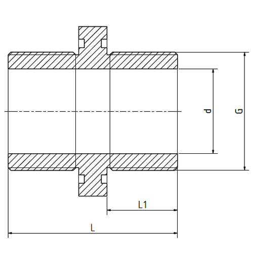 PE-el Doppelnippel, 10 - kant, elektrisch leitfähig, Dichtung FEP-FKM