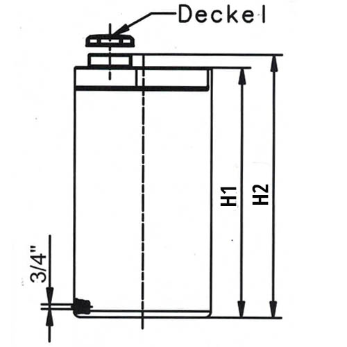- inkl. 3/4 Auslauf (Innengewinde) an der Vorderseite und dazugehörigem 3/4“ Verschlussstopfen (wird lose mitgeliefert)