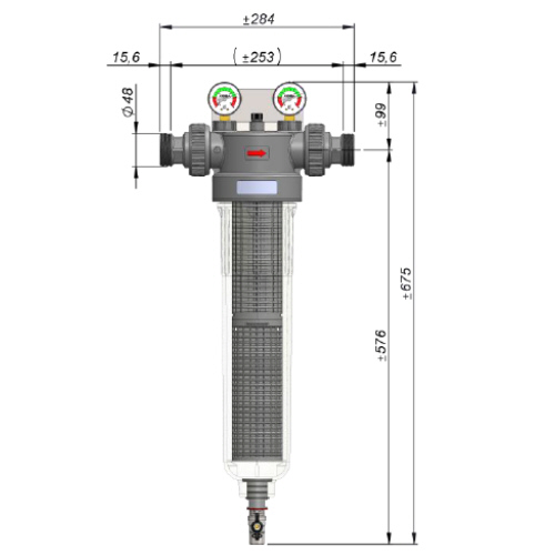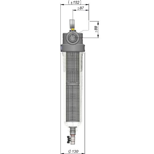 - Einfache und bequeme Entleerung (Ablasskugelhahn am Boden des Gehäuses).