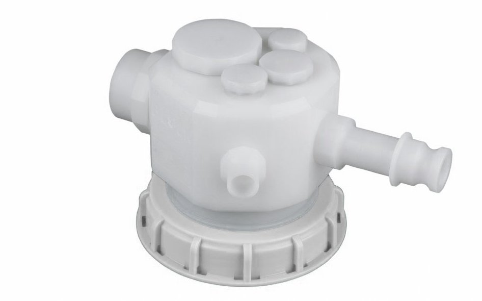 PE-natur MULTI FLEX BLOCK mit TRI CLAMP Anschluss aus PE-natur und Säuredunstabscheider Typenreihe SDA 90 mit Füllung