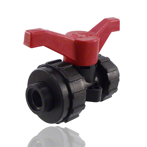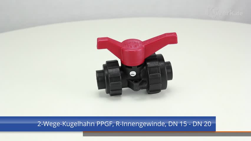 2-Wege-Kugelhahn PPGF, PVC-U-Klebemuffen, FEP/FFPM = blauer Hebel