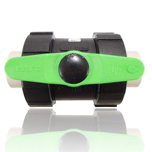 2-Wege-Kugelhahn PPGF, PE-Stutzen, FPM = grüner Hebel