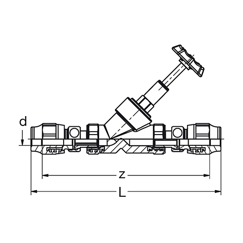 PP-RCT-RG Ventil Schrägsitz mit Metallsitz verschraubt grün, mit Rückflussverhinderer