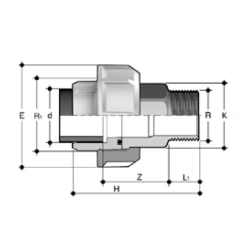 PP Übergangsverschraubung auf Messing Außengewinde, Heizelementmuffenschweißen