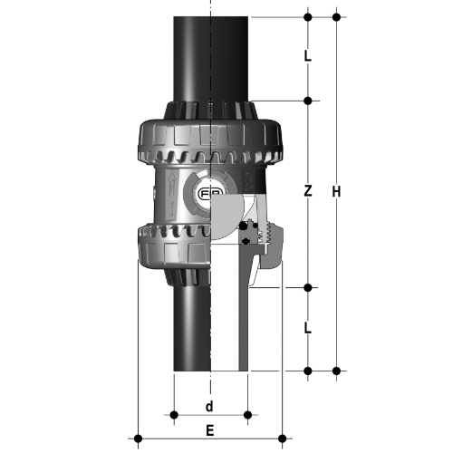 PVC-U Kugelrückschlagventil, PE100-Stutzen, FPM