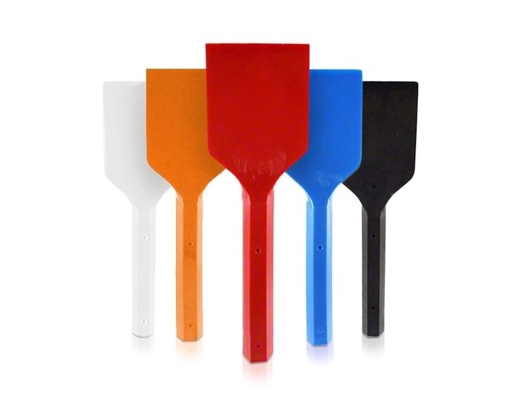 Schaber aus Kunststoff und hier insbesondere unsere Schaber aus PE in verschiedenen Ausführungen, finden ihre Anwendung in vielfältigen Bereichen der Industrie-, Chemie- und Verfahrenstechnik. Die von dem Unternehmen Kwerk GmbH in Montabaur produzierten Schaber sind langlebig und aufgrund der Größe für Rührarbeiten und auch für Reinigungszwecke in der Lebensmittel- und Lackindustrie einsetzbar. Auf der Grifffläche sind zwei Bohrungen eingebracht, die es ermöglichen, den Schaft mit einer Verlängerung aus Holz oder einem stabilen Kunststoffrohr zu versehen. Der Schaber aus PE, Farbe BLAU wird oftmals für die Reinigung von Filtertüchern der Filterpressen eingesetzt. Der Schaber ist aus dem Werkstoff PE-MD (mittlere Dichte) hergestellt, halb hart und etwas biegsam und verhindert damit, dass evtl. wichtige Anlagenteile nicht beschädigt werden. |