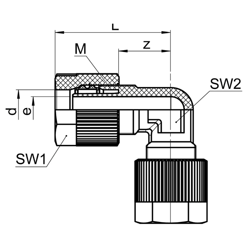 Winkelverschraubung aus PVDF, Typ SO 22021
