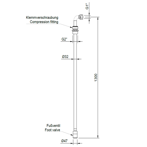 Sauglanze DN 25 (d32) aus PE elektrisch leitfähig, verstellbar, mit Fussventil