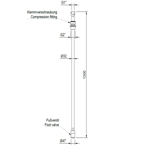 Sauglanze DN 25 (d32) aus PE elektrisch leitfähig, verstellbar, mit Fussventil