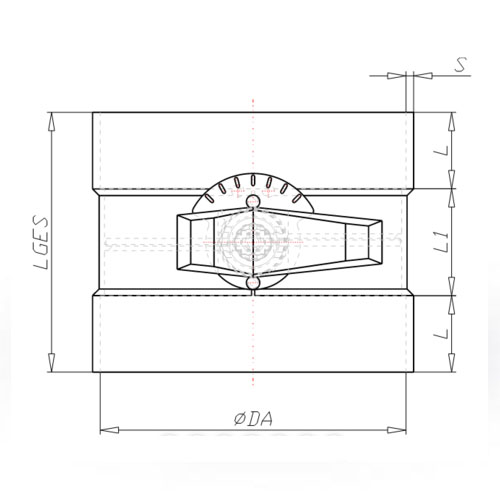 - PP-EL-s Drosselklappe mit Griff, mit 15° Raster, mit Muffe
