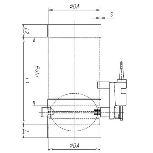 PP-EL-s Regelklappe (PPs-el) mit Motortrageplatte in Rohrrichtung, mit Muffe.