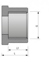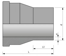 Die Einlegeteile sind gedreht und außen abgestuft, für alle handelsüblichen Überwurfmuttern von d 20 bis d 110 geeignet.