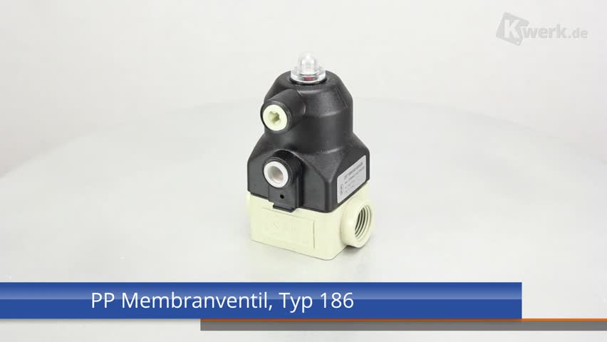 PP 2/2-Wege-Membranventil, pneumatische Ausführung, NC, Schweißmuffe, Typ 186