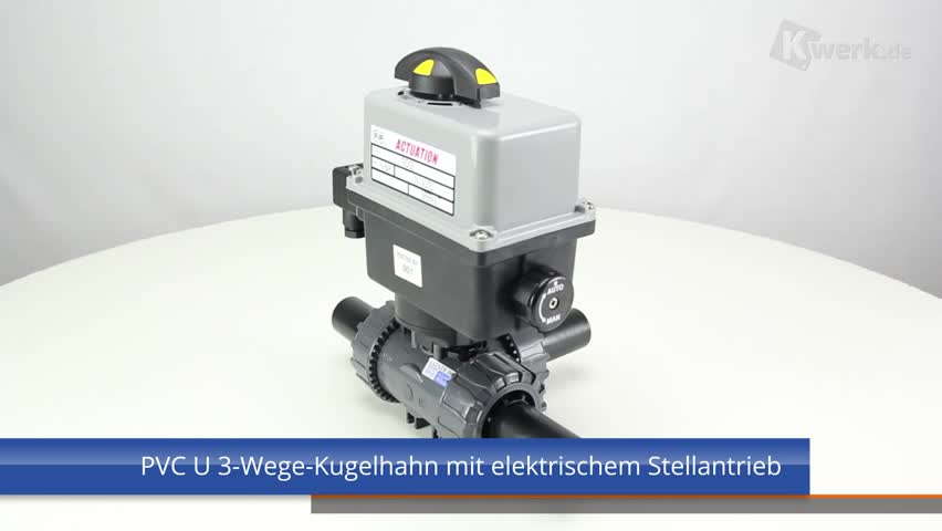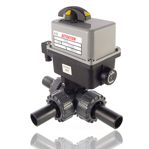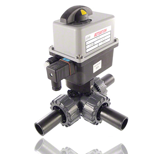 3/2-Wege-Kugelhahn aus PVC-U mit elektrischem Stellantrieb