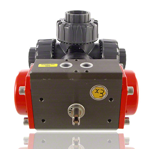 PVC U 3/2-Wege-Kugelhahn , pneumatische Ausführung