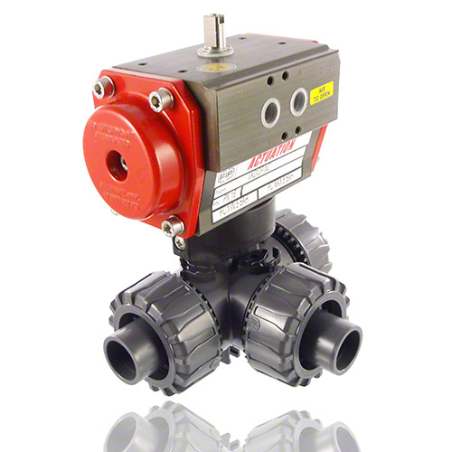 PVC U 3/2-Wege-Kugelhahn , pneumatische Ausführung