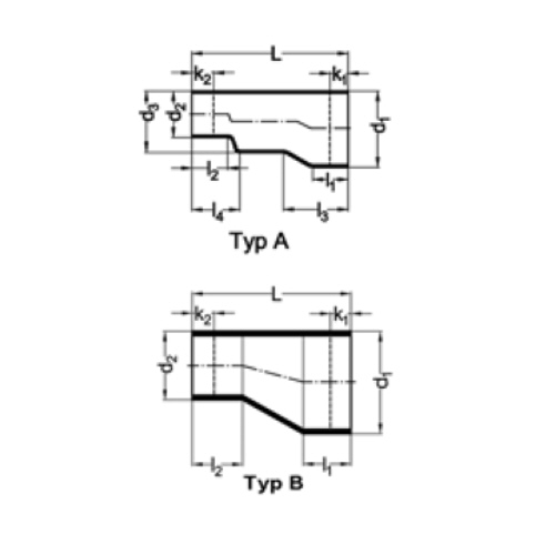 PE-Abfluss, Reduktion, lang, exzentrisch