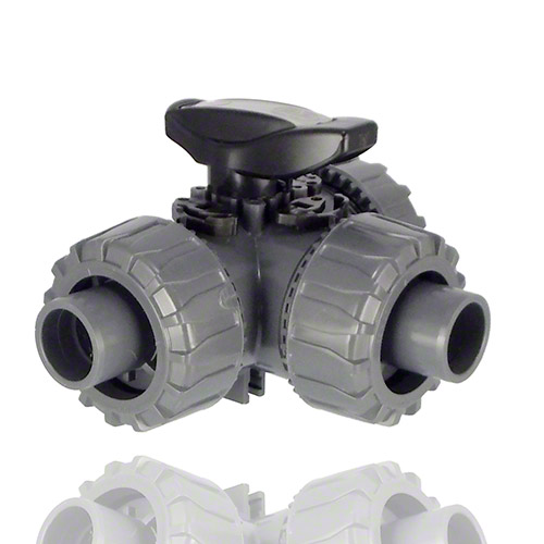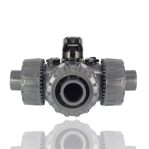 PVC-U 3-Wege-Kugelhahn, T-Bohrung, Klebestutzen, FPM