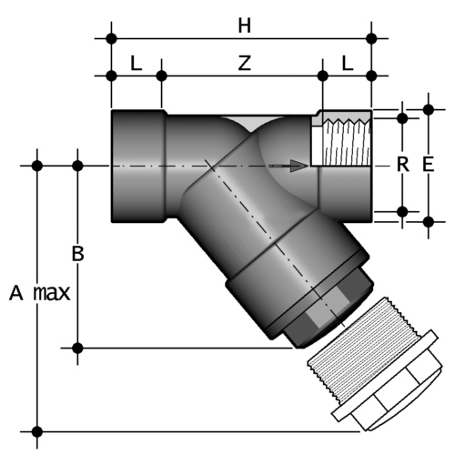 PVC-U Schmutzfänger transparent, Gewindemuffe, EPDM
