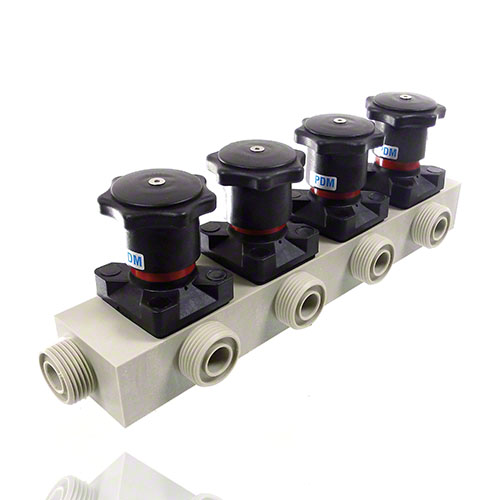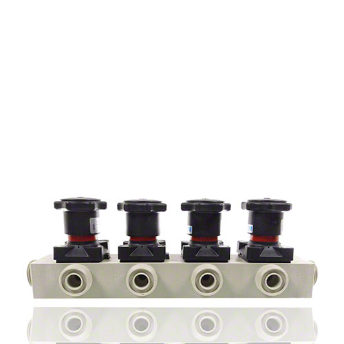 Mehrwegeventil aus PP mit vier Handantrieben, Membrane FPM