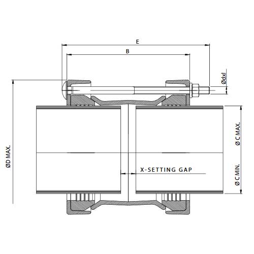 Rohrkupplung mit großem Spannbereich und einem Grundkörper aus qualitativ hochwertigem Duktilguss GGG 450-10. Die Epoxidharzbeschichtung verstärkt den Langzeit-Korrosionsschutz, ist verschleißbeständig und schützt vor Korrosionsfolgeschäden. Andere Beschichtungen sind auf Anfrage lieferbar. Schrauben und Muttern bestehen aus hochwertigem Stahl der Güteklasse 8.8, gem. ISO 898-1 und sind mit einer Dacromet™ Schutzschicht der Qualität B 500 versehen. Die Dacromet™ Beschichtung basiert auf einer Aluminium / Zinkpartikel-Mischung und gewährleistet somit einen hervorragenden Korrosionsschutz. Die Dichtungen bestehen aus EPDM der Qualität E / WA gem. BS EN 681-1:1996. NBR-Dichtungen sind auf Anfrage lieferbar. Sämtliche Dichtungen und Beschichtungen sind zugelassen gem. KTW bzw. DVGW für den Einsatz im Gas- und Trinkwasserbereich (NBR für Gas). Eigenschaften - Betriebsdruck bis max. 16 bar - Auswinkelung der Kupplungen bis max. 6°. - Bohrung der Flansche gem. DIN, BS und ANSI. Genereller Einsatzbereiche der HEGAWA Kupplungen: Sämtliche, im erdverlegten und natürlich auch im nicht erdverlegten Rohrleitungsbau üblichen Materialien mit stabilen Wandungen wie: Grauguss, duktil. Guss, Stahl, Asbestzement, GFK, Stahlbeton, PVC, PE. Innenstützringe: Innenstützringe sind insbesondere beim Einsatz auf PE-Rohren bzw. sämtlichen Weichthermoplasten zu verwenden. Dünnwandige PVC-Rohre können im Einzelfall auch den Einsatz von Innenstützringen erforderlich machen. Bei Unsicherheiten bezügl. der Rohr-Wandstärken und der Rohr-Materialien ist dies im Vorfeld abzuklären, um mögliche Schädigungen der Rohre und daraus resultierende Undichtigkeiten und Folgeschäden zu vermeiden. Ebenso ist ein möglicher Unterdruck in den Rohrleitungen im Vorfeld abzuklären. |